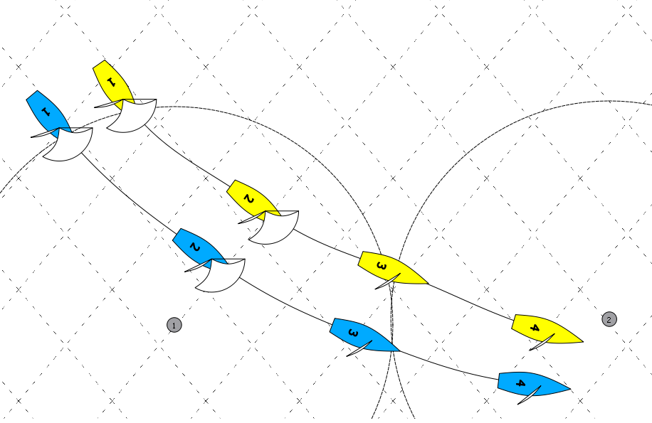 Muss Blau nach Position 2 halsen und Bahnmarke 1 runden?