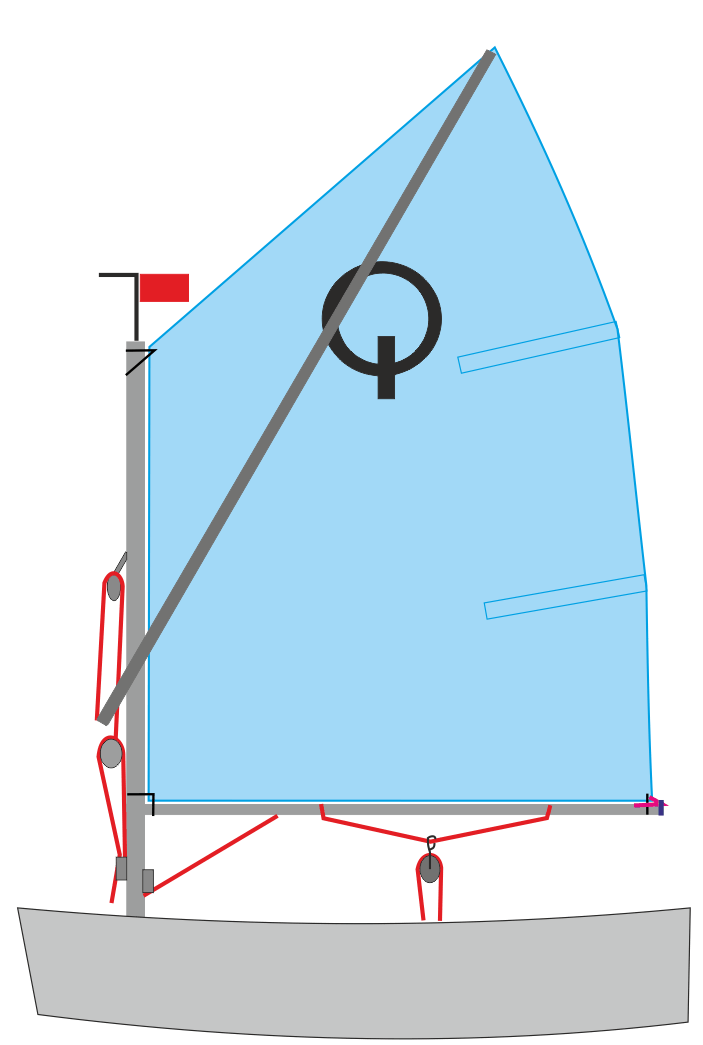 | Das Segel faltenfrei zurechtziehen - Sprietfall - Schot - Niederholer |