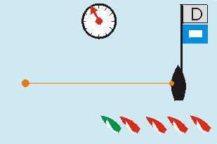 Entscheiden sie, welche Signale die Wettfahrtleitung direkt nach dem Startsignal geben muss und welche Strafe das grüne Boot bekommt!