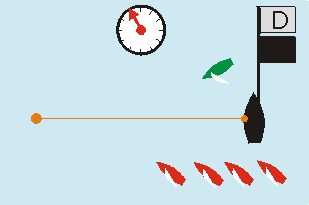 Entscheiden sie, welche Signale die Wettfahrtleitung direkt nach dem Startsignal geben muss und welche Strafe das grüne Boot bekommt!