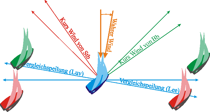 Die Vergleichspeilung zeigt dir, wenn der Wind dreht