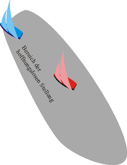 Bei wenig Wind und flachem Wasser wirkt die Wirbelschleppe bis zur 10 bis 20-fachen Masthöhe nach hinten